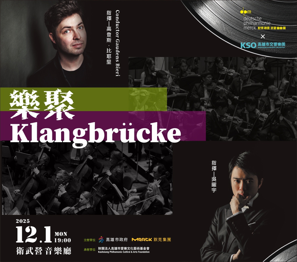《Klangbrücke‧樂聚》音樂會將於12/1在衛武營音樂廳盛大獻演,由首度來台的默克德意志愛樂樂團(DPM)與高雄市交響樂團(KSO)同台演出,由德籍指揮高登斯.比耶里與台灣指揮家吳曜宇與聯袂輪番執棒,呈現兼具本土情感與世界經典的音樂饗宴。此次台、德音樂家合作如同跨越時空的對話,不僅展現高雄深厚而多元的文化底蘊,也開啟台德音樂交流的新篇章。透過音樂連結德國與台灣的心靈與情感,激盪出跨文化的共鳴,讓高雄在國際藝文交流舞台綻放獨特魅力。